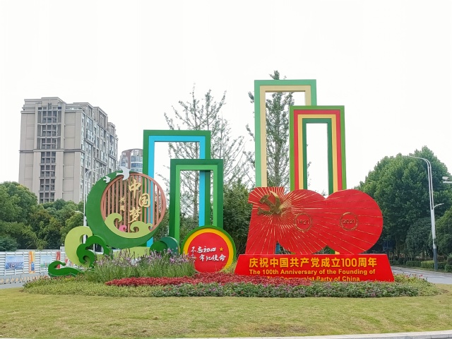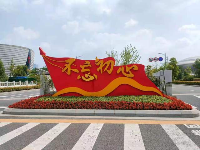 不忘初心來(lái)時(shí)路,同心共筑中國(guó)夢(mèng)。位于建鄴區(qū)夢(mèng)都大街揚(yáng)子江大道路口高7米,占地面積100余平方米的主題景觀,在綠地基礎(chǔ)上突顯了“慶祝中國(guó)共產(chǎn)黨成立100周年”活動(dòng)標(biāo)識(shí)等黨建元素;中國(guó)傳統(tǒng)紋樣圖案、彩色立體門(mén)框的設(shè)計(jì),賦予整件作品立足傳統(tǒng)、開(kāi)放包容的內(nèi)涵;蛇鞭菊、斑葉芒、彩葉草、夏堇等各式花卉錯(cuò)落有致的鋪滿地面,烘托了喜迎建黨百年的喜慶氛圍。
