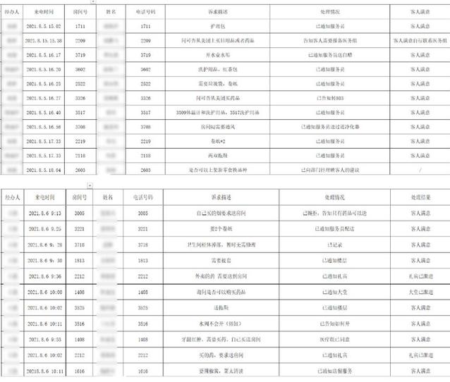 3323房間需要辣椒醬或老干媽”、“2420房間需要免洗洗手液”、“3903房間住客喉嚨不舒服需要藥”……客服中心每天都會(huì)接到各種特殊的需求并一一做好記錄,及時(shí)聯(lián)系相關(guān)同事協(xié)助采買、送達(dá)。