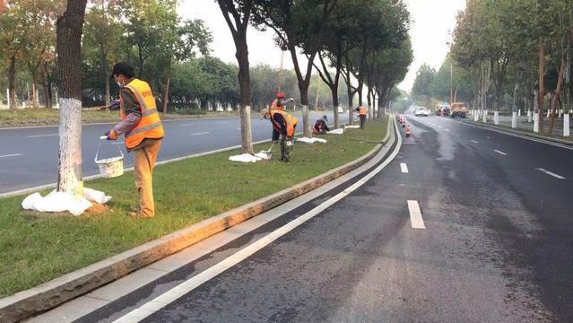 公司嚴(yán)格要求刷白“精細(xì)化”養(yǎng)護(hù)標(biāo)準(zhǔn),首先根據(jù)喬木、花卉類樹木的特性,區(qū)別了刷白高度;其次,在刷白時(shí)采取了墊襯措施,確保地面和地被植物干凈美觀;最后,按照止口平整,高度一致,刷白均勻,不留死角的要求,在城區(qū)多主干道和公園同時(shí)開展刷白工作。