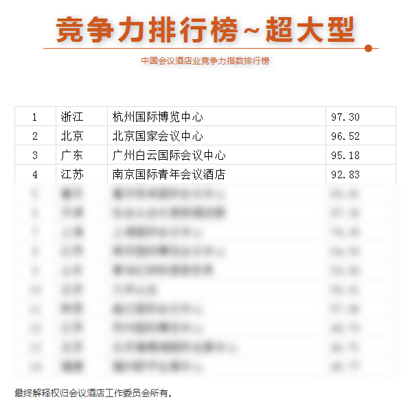 本屆榜單按照酒店的規(guī)模體量分為超大型、大型、中型、小型四個類別,從上一年度承接會議數(shù)量和規(guī)模、會議室容量和數(shù)量、客房總數(shù)、渠道客評、經(jīng)營數(shù)據(jù)等多方面進行綜合評價,經(jīng)數(shù)據(jù)調(diào)研、專家評審等多個環(huán)節(jié)細致評估,得到了相對客觀準確的評選結(jié)果。國青酒店憑借自身場地優(yōu)勢、對會議客戶市場的探索及挖掘、專業(yè)的會議接待服務(wù),贏得了專家評委及企業(yè)買家的認可,在榜單中以總分92.83的好成績位列全國第四。