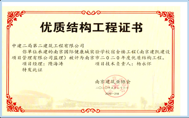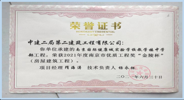 2021年12月6日,中國施工企業(yè)管理協(xié)會(huì)公布2020-2021國家優(yōu)質(zhì)工程獎(jiǎng)獲獎(jiǎng)名單,河西集團(tuán)新城公司所屬南京河西工程項(xiàng)目管理有限公司代建的南京國際健康城實(shí)驗(yàn)學(xué)校項(xiàng)目喜獲該獎(jiǎng)項(xiàng)。國家優(yōu)質(zhì)工程獎(jiǎng)設(shè)立于1981年,是經(jīng)國務(wù)院確認(rèn)的我國工程建設(shè)領(lǐng)域設(shè)立最早,規(guī)格最高,跨行業(yè)、跨專業(yè)的國家級(jí)質(zhì)量獎(jiǎng)。