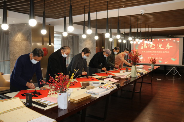 寫春聯(lián)、貼春聯(lián)是中國(guó)春節(jié)的傳統(tǒng)習(xí)俗,也是辭舊迎新過(guò)大年的一種象征。為弘揚(yáng)中華書法藝術(shù)與傳統(tǒng)節(jié)日文化,給市民、住店客人送上新春祝福。近日,河西集團(tuán)青奧城公司金帆萬(wàn)源酒店開展“?;⒂骸?022新年納福公益筆會(huì),來(lái)自南京的書畫名家應(yīng)邀出席。
