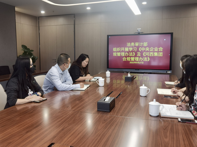 河西集團(tuán)法務(wù)審計(jì)部組織開展學(xué)習(xí)《中央企業(yè)合規(guī)管理辦法》