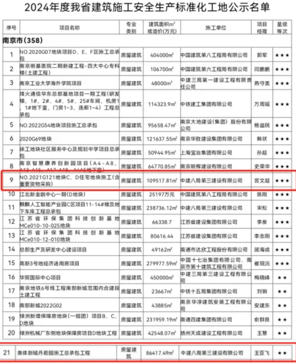 根據(jù)《南京市建設(shè)工程市級(jí)標(biāo)準(zhǔn)化工地評(píng)審辦法》,經(jīng)過嚴(yán)格評(píng)審程序,南京市城鄉(xiāng)建設(shè)委員會(huì)公布了2024年下半年南京市房屋市政工程安全文明標(biāo)準(zhǔn)化工地名單。河西集團(tuán)奧體建設(shè)開發(fā)的丹若園、江尚紫薇、瑞香園、錦尚紫蘭四個(gè)項(xiàng)目脫穎而出,獲此殊榮。這些項(xiàng)目涵蓋不同施工階段,均展現(xiàn)了奧體建設(shè)對(duì)安全文明施工的高度重視,為集團(tuán)后續(xù)同類項(xiàng)目施工管理樹立了良好典范。