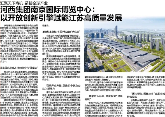 2025年全國“兩會”期間,揚(yáng)子晚報全媒體平臺推出《春天的號角》專題報道,總結(jié)江蘇各地各部門在推進(jìn)高質(zhì)量發(fā)展中取得的新進(jìn)展、新成果,展望新的一年奮進(jìn)路上的新希望、新作為。3月6日,《揚(yáng)子晚報》刊登河西集團(tuán)南京國際博覽中心深度專題報道,展現(xiàn)博覽中心在“十四五”期間高質(zhì)量完成規(guī)劃目標(biāo)任務(wù),努力在行業(yè)領(lǐng)域營造更加充分的先行優(yōu)勢,在江蘇高質(zhì)量發(fā)展的藍(lán)圖上書寫新時代的“強(qiáng)富美高”答卷。